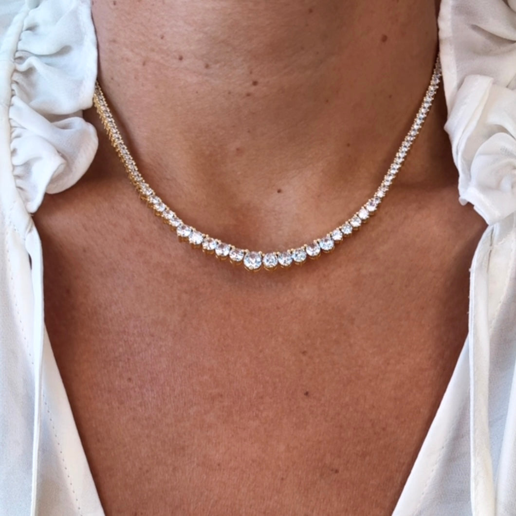 Our luxe cz MONROE TENNIS Necklace delivers instant glam with every turn. Choose gold or silver and elevate any look with timeless sparkle that never fades.