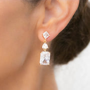 Clear cz emerald, trilliant, princess cut drop earrings