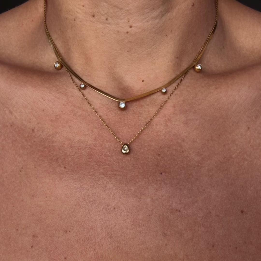 Effortless, everyday elegance. This layered set features a sleek diamond herringbone chain paired with a delicate crystal solitaire necklace for the perfect balance of shine and simplicity. Dainty yet statement-making, it’s the kind of set you can put on and forget about—instantly elevating any look. Chic, timeless, and designed to be your new go-to for everyday luxury. ✨