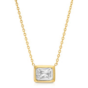 This elegant diamond necklace features a radiant-cut stone set in a bold, rectangular bezel of polished gold. Suspended from a delicate gold chain, it strikes the perfect balance between modern sophistication and timeless minimalism — a versatile piece that transitions effortlessly from day to night.