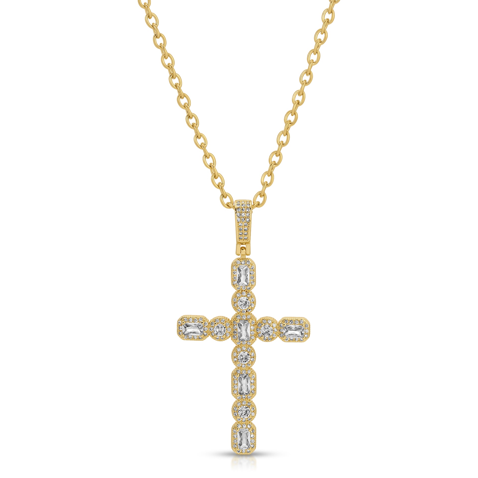 - Baguette and round micro pave Diamond (cz) Cross Pendant