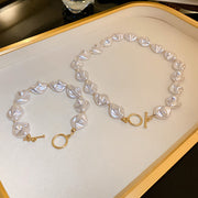 - Freshwater pearl and gold beaded necklace