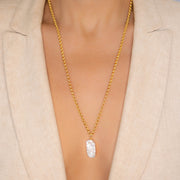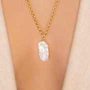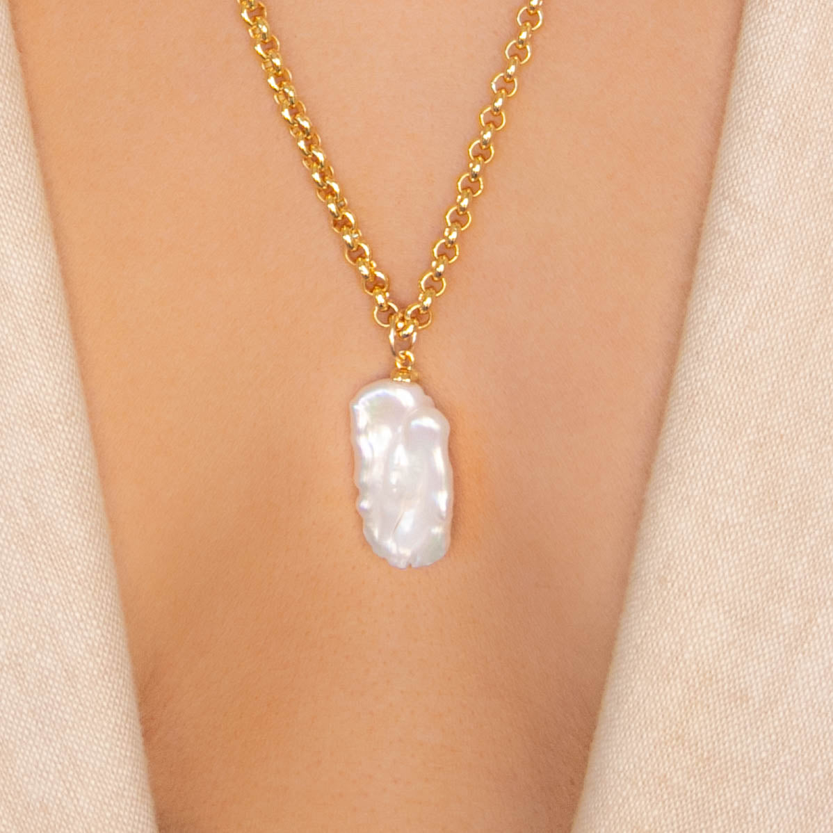 - Pearl is a free form rectangular freshwater pearl 32mm x 12mm