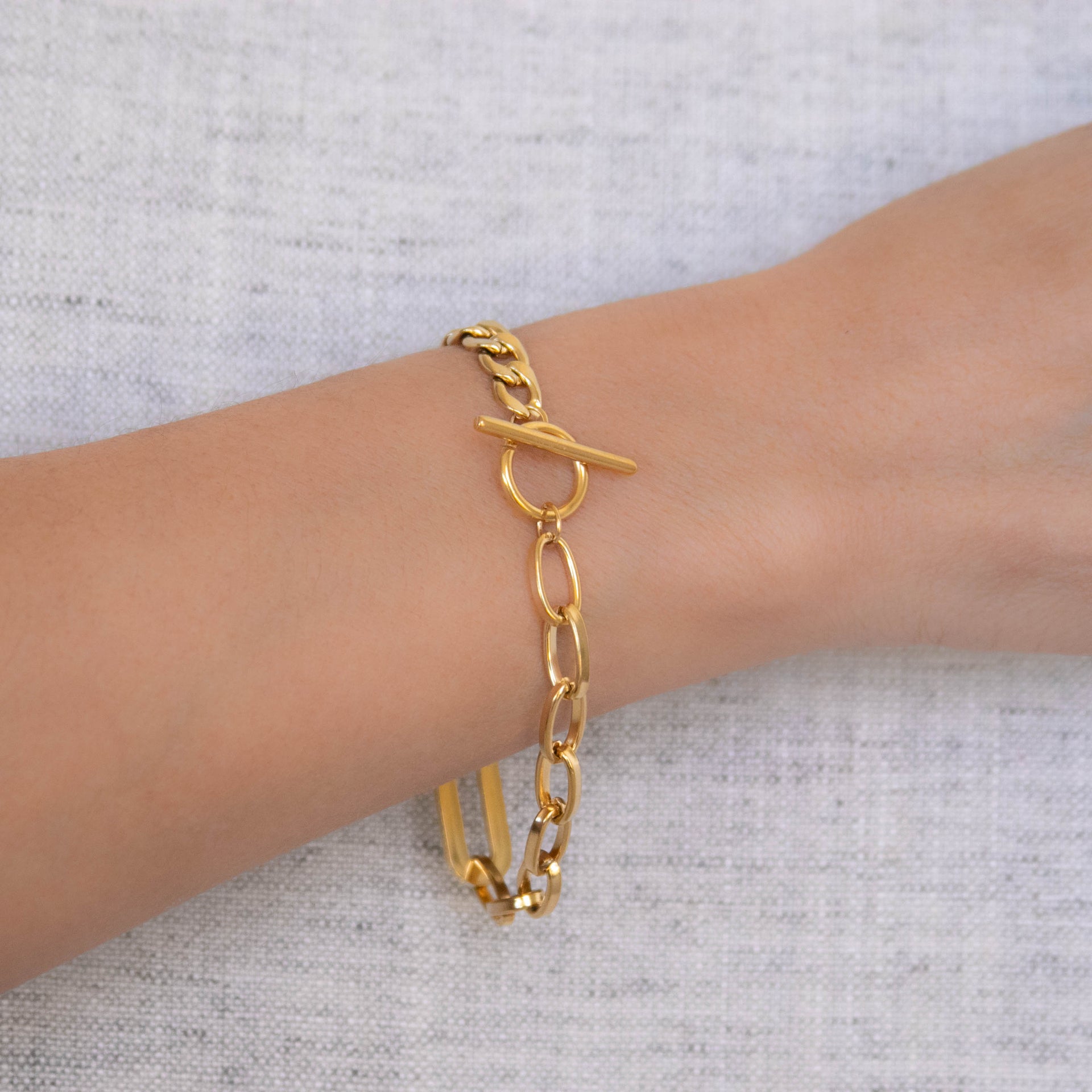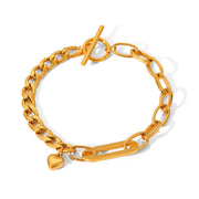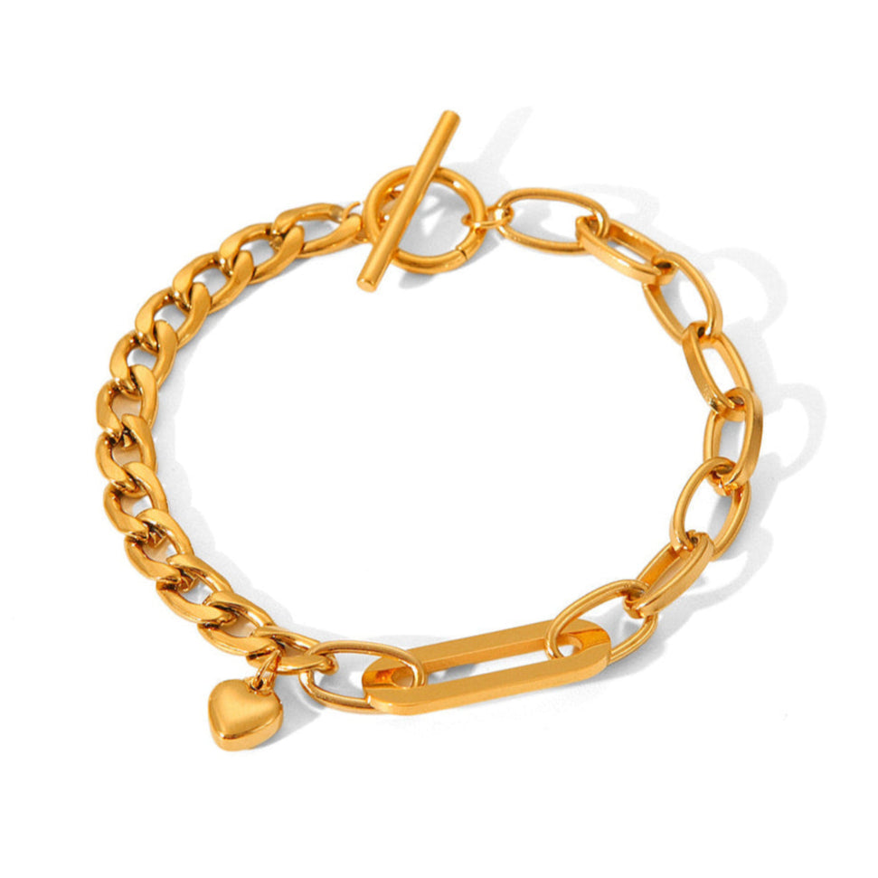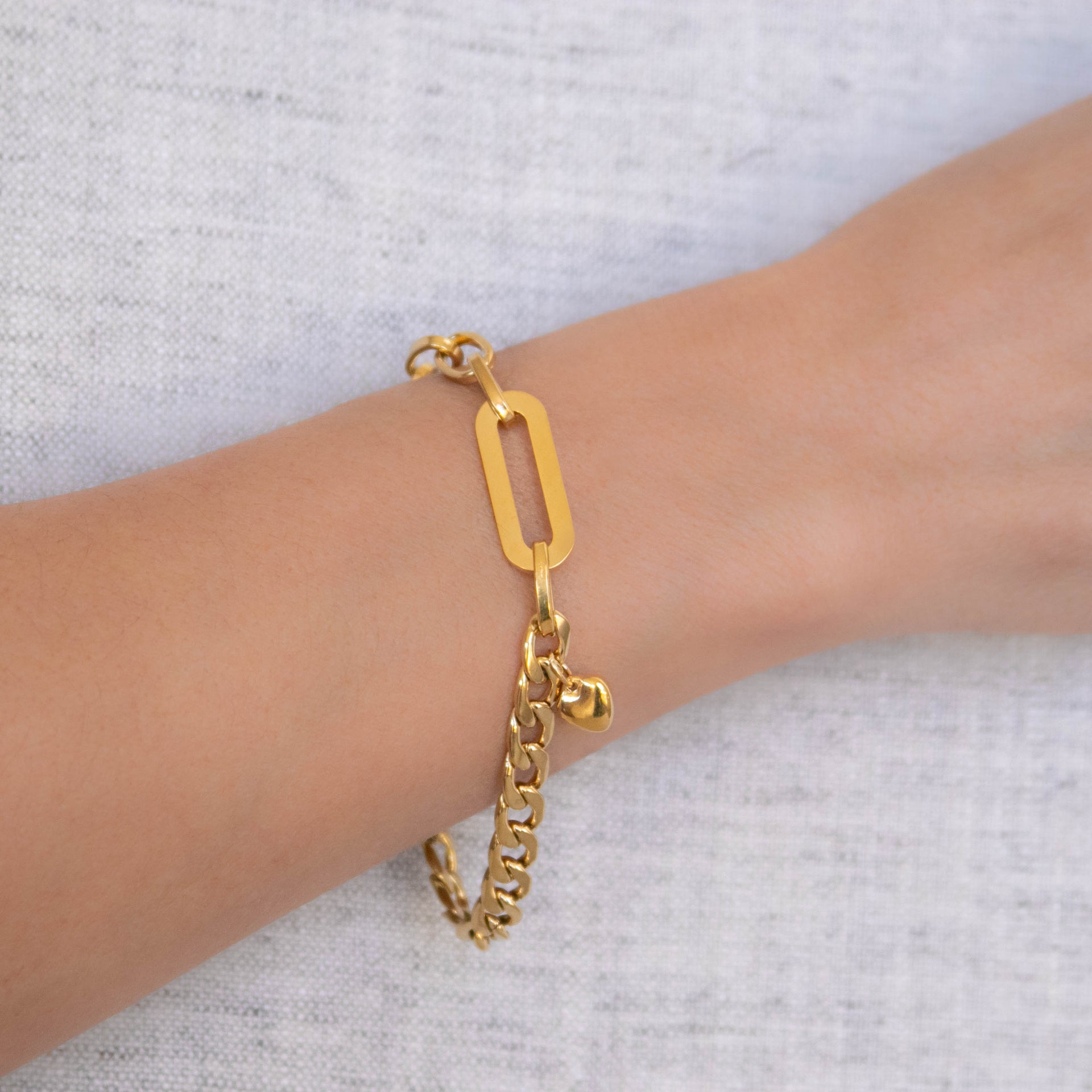 - Oval link and cuban link charm bracelet, featuring 1 heart charm